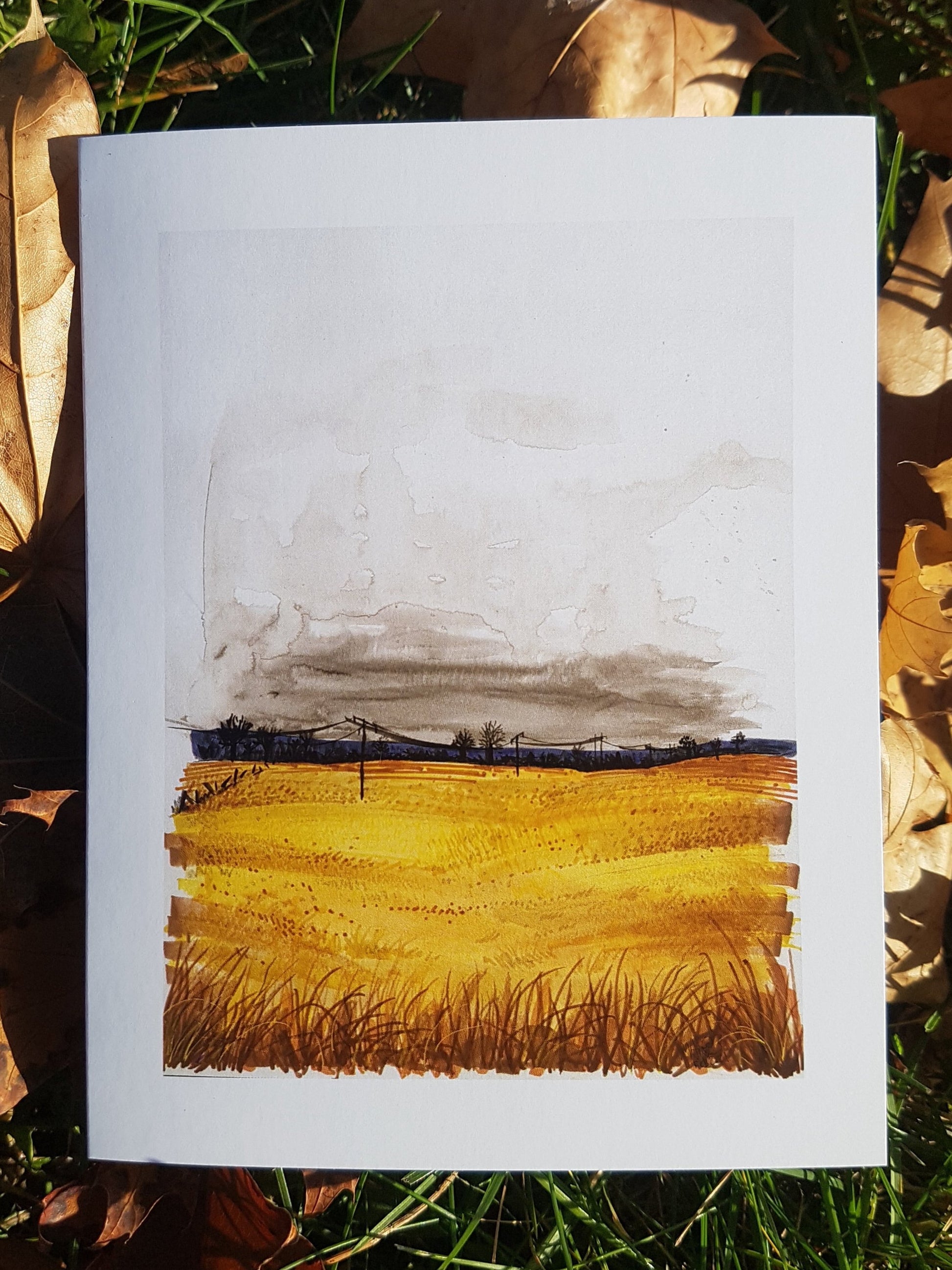 Celebrate the beauty of Canada's landscapes with this greeting card. Featuring a rolling field on a gray winter day. Perfect for any occasion, this card offers a blank interior, allowing you to personalize your message. Whether for birthdays, thank you notes, or just a simple hello, this card is a thoughtful way to share your sentiments. Printed in Canada, it comes with a matching envelope for easy gifting.